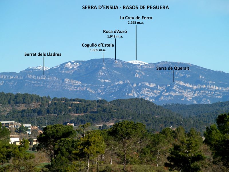 Les vistes vers el nord-oest són extraordinàries. Van des del Prepirineu amb la Serra d'Ensija, els Rasos de Peguera i les Serres de Queralt i de Mata-rodona; fins al Pirineu amb la Serra del Cadí, les Penyes Altes del Moixeró, la Tosa d'Alp i el Puigllançada.